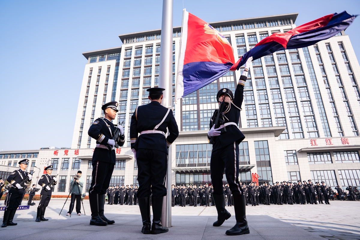 图为1月10日上午,南通市公安局举行庆祝第六个中国人民警察节升警旗仪式。