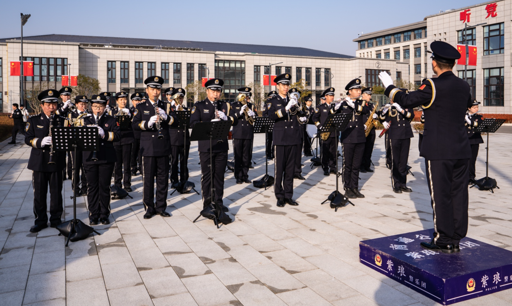 图为1月10日上午,南通公安警乐团现场演奏《中国人民警察警歌》,展示文化育警成果。