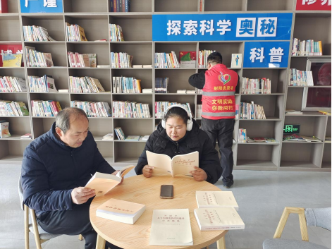 “张叔,您上次说想听‘养老新政策’,我们把内容剪进今天的广播里啦!”志愿者小周拿着手机,给来书屋看书的老党员同步最新宣讲内容。这边,两位村民戴着耳机跟着书本“预习”;那边,志愿者正踩着梯子往书架上补新到的理论读物——书屋成了“理论加油站”,大喇叭成了“移动扬声器”,从“念原文”到“讲实例”,从“录音频”到“现场聊”,“红新之声”把“固定课堂”搬进了村居的角角落落。