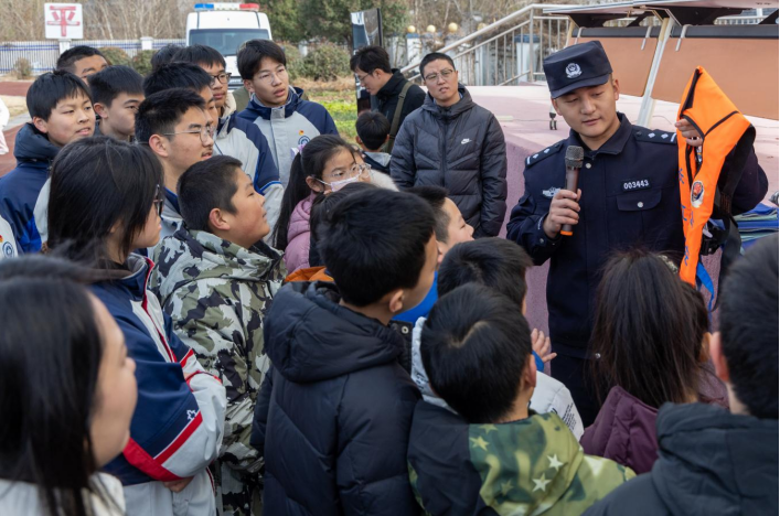 为推动长江保护与安全理念深入人心,活动现场设置了丰富的互动环节。在警用装备体验区,市民亲手触摸平日难得一见的单警装备与救援器材,在民警讲解中了解其功能与用途。“长江大保护”知识问答与防溺水技能教学,则将安全与生态课堂搬到现场,民警通过实物展示与实操演示,生动讲解禁渔政策、生态保护及水上自救知识,在市民尤其是青少年心中播撒守护母亲河的种子。