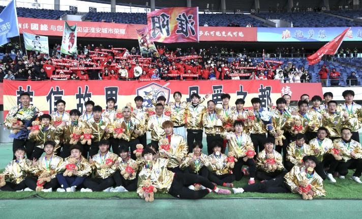 闪电破门、倒挂金钩、超绝扑救、快意驰骋……那些奔跑与拼搏的身影、青涩亦坚韧的面庞,那些承载热爱的高光时刻,一次次照亮了“淮超”的绿茵场。这是一支平均近40人、平均年龄18岁的青年团,他们鲜衣怒马,带着对足球的热爱全力冲刺;他们锐不可当,凭借扎实的技术与顽强的意志攻克一个又一个难关,最终用冠军证明了自己的实力。