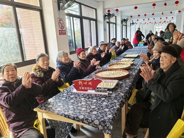 在金岸社区新时代文明实践站内,“邻里嘉年华”活动在欢声笑语中展开。现场展示了辖区居民的金婚照片、寿星照,记忆与温情在光影间流转。大家一边围坐包着饺子,一边欣赏着居民的才艺表演。热腾腾的饺子端上桌,居民们边尝边聊。“希望咱社区越来越暖!”李大爷说道。吃完饺子,大家还参与了投壶、套圈活动,点燃了冬日温情。(周虎琴)