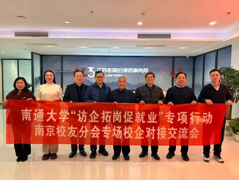 活动前,校社会资源处处长、校友会副会长兼秘书长施险峰,校财务处处长王夏强,校学生工作处副处长易静等一行赴南京校友会副会长、江苏新高的律师事务所党委书记/管理合伙人宋辉校友企业开展“访企拓岗促就业”专项调研与校企对接交流。调研组参观律所办公区域,详细了解律所发展历程、核心业务、专业布局及人才需求,并与律所负责人、校友代表就毕业生就业、法学专业实习实践基地建设、校企协同育人等议题座谈。