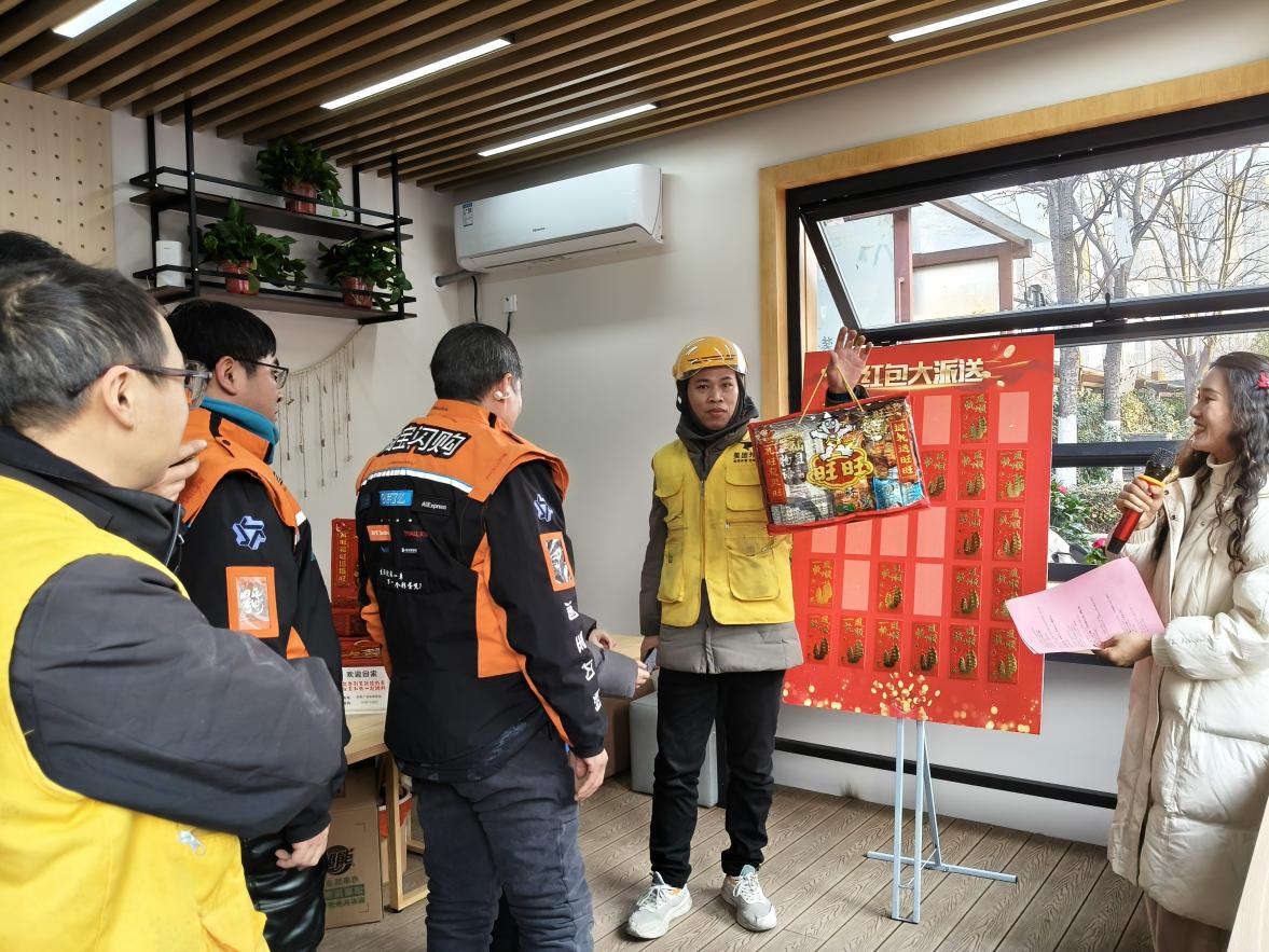 “哈哈,我抽到了旺旺大礼包,寓意新年旺旺!”1月15日,泰州市姜堰区罗塘街道凤凰广场亲“新”驿站里暖意流动,一位外卖骑手从“福气红包墙”抽中祝福礼,喜悦之情溢于言表。这里,罗塘街道党工委联合区妇联、交警罗塘中队、高陈社区正在开展“亲‘新’驿站心连‘新’ 暖心服务实打实”主题活动,为新就业群体送上了一份份看得见、摸得着的冬日温暖。