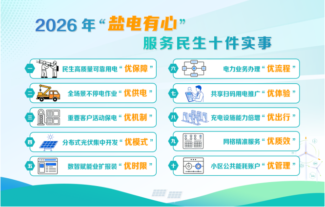 盐城市发改委煤电油气处处长陆春光说:“盐城供电公司发布的服务营商环境2026年工作举措,为加快构建具有盐城特色的现代电力营商环境提供工作指引,举措中提到的绿色能源基地升级、零碳园区建设、内陆园区绿电供应规划、企业绿色用能,也是我们发改部门2026年重点推进事项,举措的落实将有效助力盐城碳达峰试点城市与绿色低碳发展示范区建设。”