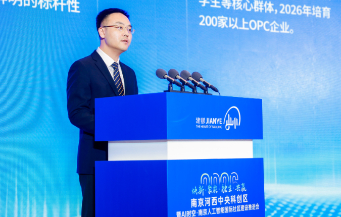 建邺区委常委、统战部部长,河西中央科创区管委会筹备组组长佘子微发布了2026年河西中央科创区建设二十件重点工作和《AI时空・南京人工智能国际社区建设三年行动计划(2026-2028年)》。