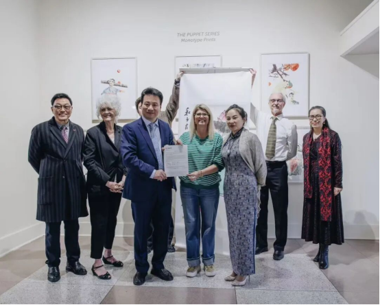 近日,美国艾比林格雷斯博物馆(The Grace Museum)举行中国艺术家翟优作品收藏仪式,博物馆教育总监凯瑟琳·米切尔代表馆方向翟优颁发收藏证书。翟优创作的中国画《和平友好 事事大利》正式入藏该馆永久馆藏序列。