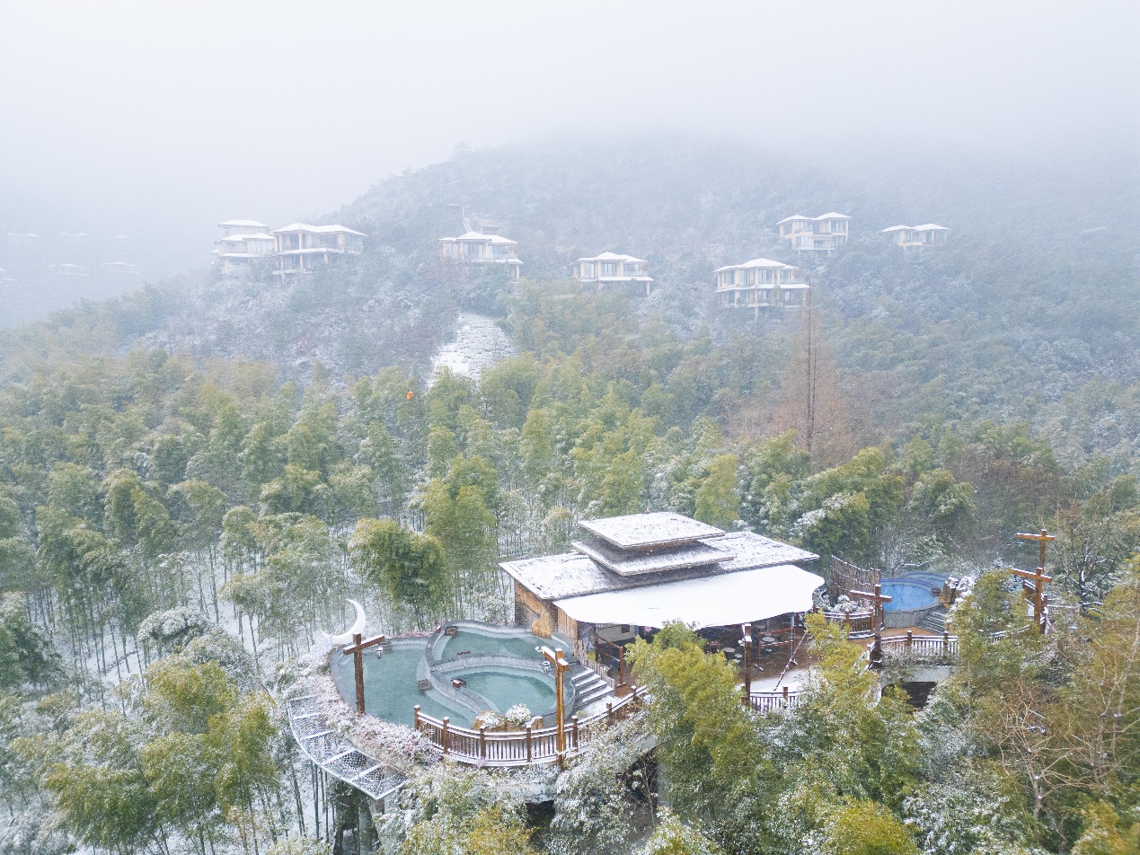 天目湖御水温泉池畔,又是另一番意境。热泉氤氲,抬眼却见远山覆雪、玉树琼枝。雪花无声飘落,瞬息消融在蒸腾的水雾之中。在此处,天地壮美与身心舒泰浑然一体,成就了江南冬宿最惬意的注解。