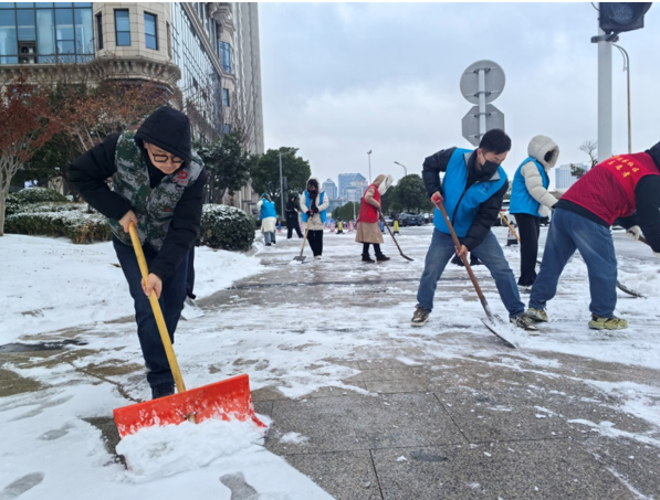 1月20日清晨,漫天飞雪为扬城披上银装,却也让殷巷社区辖区道路、小区内道路积雪成阻,给居民早高峰出行带来极大安全隐患。为守护群众“脚下安全”,扬州市邗江区新盛街道殷巷社区以雪为令、闻雪而动,迅速组织志愿者、网格员组建清雪队伍,同步联动物业力量,一场全员参与的铲雪除障攻坚战在寒风中温情上演。