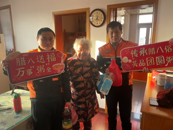 温情不止于室内,活动结束后,冬日送温暖活动接续开展。来自国家统计局扬州调查队的志愿者们与社区工作人员一同前往怡景苑顺丰快递点,为坚守岗位的快递小哥送上热粥与祝福;同时,新就业群体代表也主动参与,为空巢老人送去实用生活用品与腊八粥,双向奔赴的关怀让这个腊八更显温情。