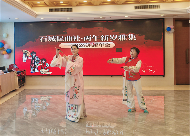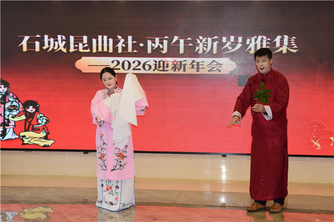 1月18日上午,南京石城昆曲社“丙午新岁雅集暨2026迎新年会”在满堂喜庆、丝竹悠扬中精彩上演。一众曲友同仁欢聚一堂,以丰富多彩的传统戏曲、音乐与歌舞节目,共贺新春,赓续文脉,在古典艺术的深沉韵味与现代演绎的清新活力交织中,开启丙午新春的文艺新篇章。雅集由杨礼瑄主持,社长孙建昌与杨岭琴分别发表了新年祝词。