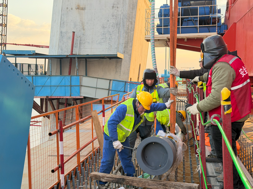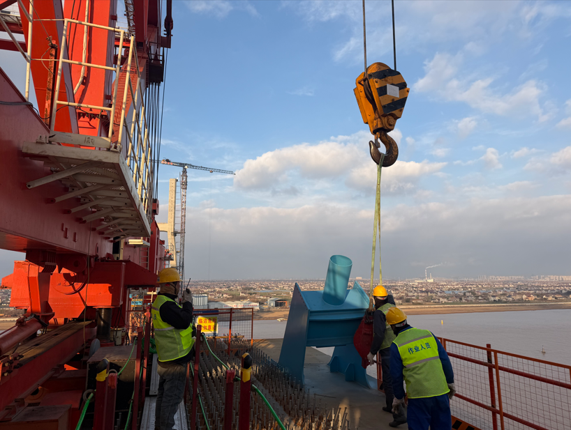 1月21日,中铁大桥局承建的沪渝蓉高铁崇启公铁长江大桥再迎重要建设节点,3号塔中跨1号斜拉索成功完成安装,标志着这座长江流域跨度最大的公铁两用斜拉桥正式进入斜拉索施工阶段。