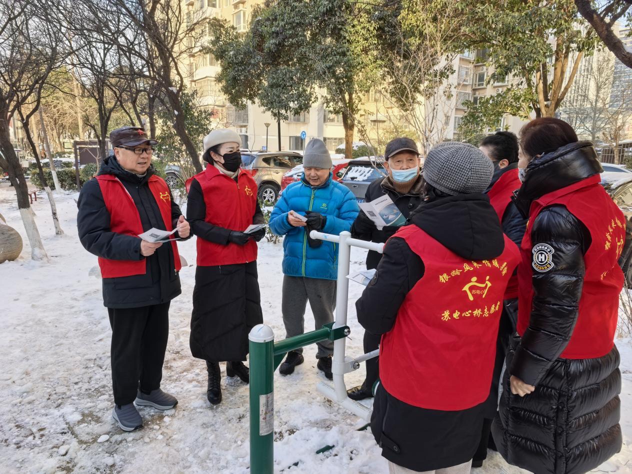 在全力推进除雪攻坚的同时,汉韵银龄分队始终心系离退休群体,同步启动“银发护银发”专项关怀行动,把党组织的温暖精准送到老同志心坎上。针对离退休同志行动不便、雪天出行风险高的特点,分队通过微信群定向推送、上门走访慰问、现场贴心叮嘱等多元方式,普及雪后出行防滑、居家安全防护等知识。一句句暖心话语、一次次精准帮扶,让离退休老同志在严寒冬日深切感受到党组织的关怀与徐电大家庭的温暖。同时,志愿者重点排查老旧小区离退休家庭周边积雪结冰情况,优先清理独居老人、高龄老人家门口的通行道路,累计为20余户老年家庭打通“安全通道”,用实际行动筑牢银发群体出行安全屏障。