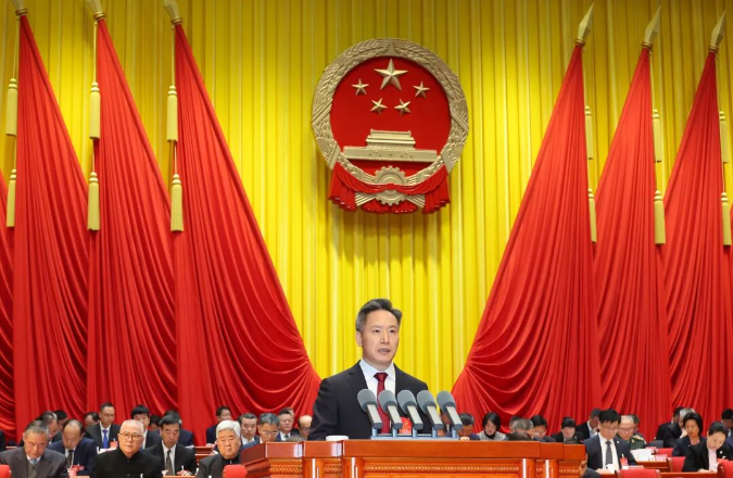 在热烈的掌声中,蒋锋代表市人民政府向大会作政府工作报告。报告分为四个部分:一是“十四五”时期工作回顾;二是“十五五”时期工作总体要求和目标任务;三是2026年主要工作;四是全面加强政府自身建设。