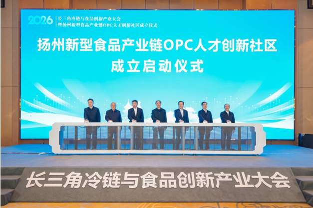 1月24日,长三角冷链与食品创新产业大会暨扬州新型食品产业链OPC人才创新社区成立仪式在扬州市广陵区举行。大会以“智汇长三角,赋能新‘食’代”为主题,汇聚了来自政、产、学、研等领域的领导、专家学者及行业精英,共同探讨产业前沿趋势,见证多项重要创新平台揭牌启动,这也标志着扬州在推动食品产业转型升级、深化长三角区域协同创新方面迈出了坚实步伐。