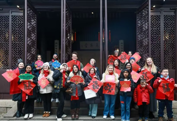 1月25日,苏州网师园撷秀楼内张灯结彩,来自美国、俄罗斯、德国、英国、韩国等十余个国家的20余位外籍人士齐聚一堂,参与“逛中国园过中国年”苏州国际日·新春游园活动。通过春节民俗体验、非遗技艺互动及园林游览,外籍友人沉浸式感受中国传统文化魅力,为园林春节文化交流系列活动拉开序幕。