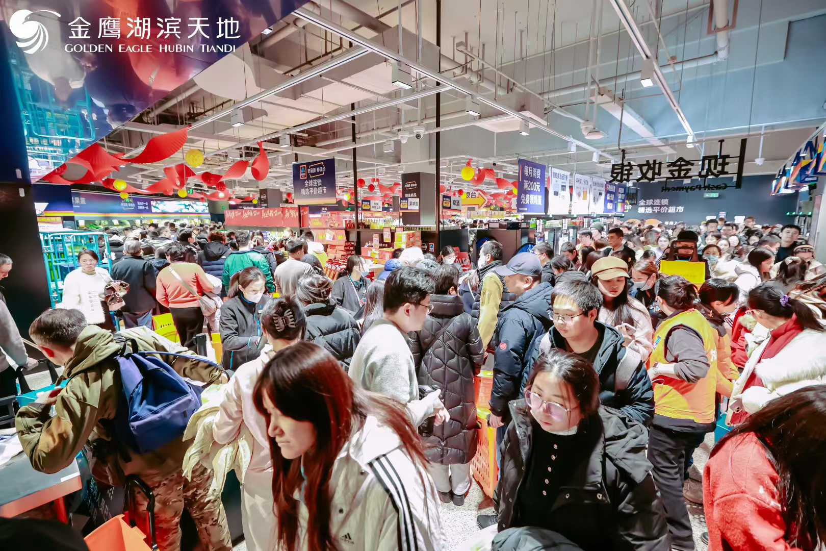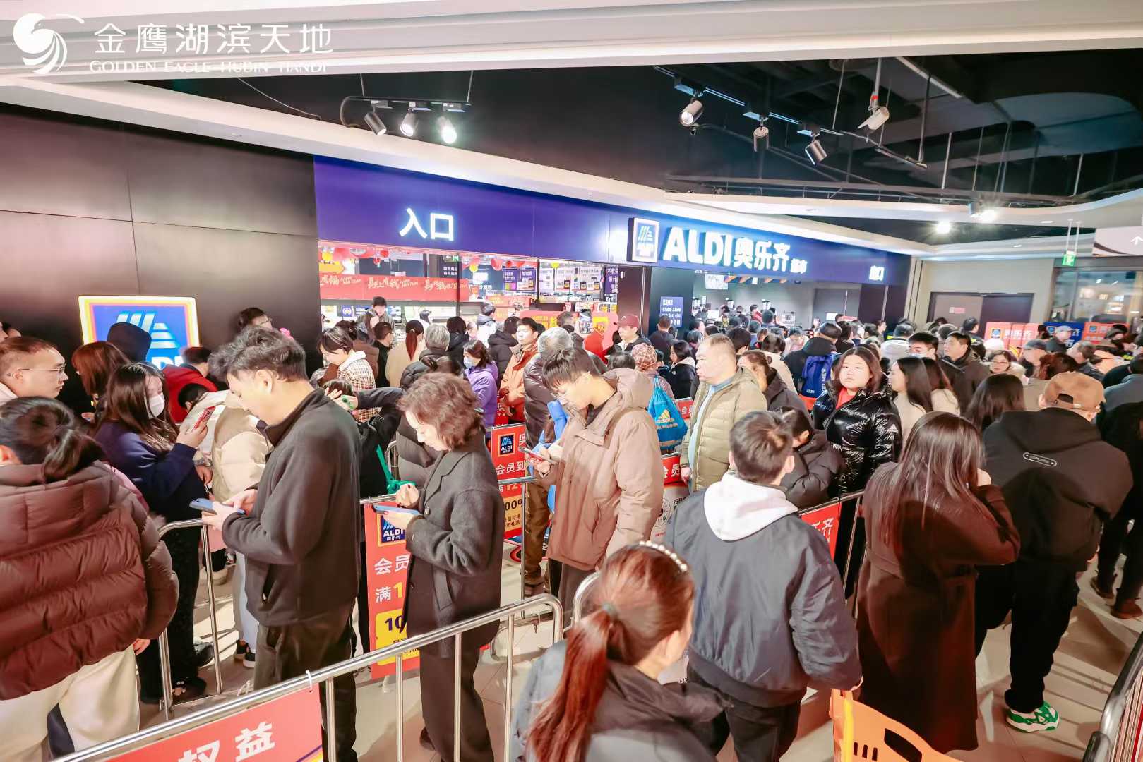 金鹰湖滨天地奥乐齐开业期间,以“集字有礼+满额回馈+业态联动”为主线,打造覆盖线上线下的开业狂欢,诚意福利精准触达家庭与高校客群。开业预热阶段,“集字赠卡”活动通过小程序互动吸引20多万用户参与;同步推出小红书平台互动,“一键四连”即可抽500元金鹰购物卡,为开业积攒充足人气。开业期间,奥乐齐推出系列消费礼遇:VIP会员消费满300元赠20元无门槛券、满600元赠100元金鹰储值卡,更有单笔满129元即可参与抽奖,奖品涵盖粮油、纸巾、购物袋等实用好礼,实现“进店有礼、消费有奖”。同时,新会员首单满99元返10元券、实付满58元享免费停车1小时等举措,切实降低购物门槛,提升消费体验。金鹰同步推动场内业态联动:凭当日购物小票可享餐饮全单8.8折、百货折上9折、黄金克减10元等优惠,实现客流在商圈内的有效循环与价值转化,构建“一站式消费+场景联动”的服务闭环。
