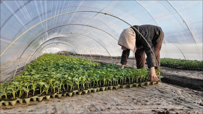 冬日暖阳下,安丰镇五进村连片现代化农业大棚如银色海洋般铺展。在新进家庭农场内,工人们在娴熟整理瓜苗。据该家庭农场负责人夏春兰介绍,其本人在五进村承包约260亩土地,种植瓜果蔬菜和小麦,常年雇用十余名村民,务工村民年收入可达三至五万元。
