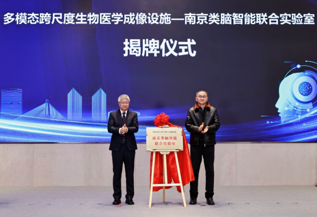 现场,中国科学院院士程和平和江苏省科技厅二级巡视员张少华,共同为多模态跨尺度生物医学成像设施—南京类脑智能联合实验室揭牌。实验室将聚焦生物智能与人工智能的深度融合,推动脑科学从“观测分析”迈向“智能解读”,引领类脑智能技术全链条升级。