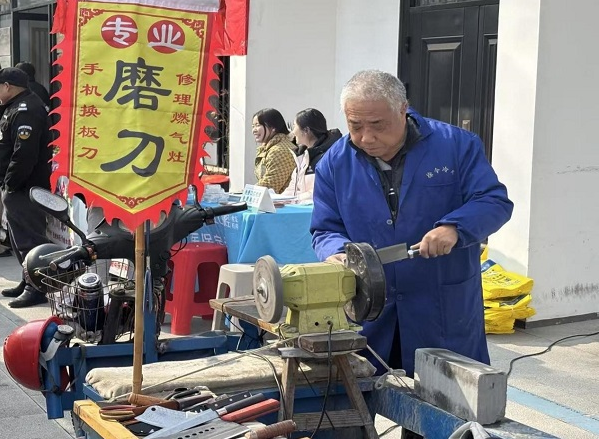 “文明有你,周周有约”文明实践便民服务现已融入西城居民日常生活,磨刀服务摊位前,有着20年经验的老师傅正不时地用大拇指试着刀锋,一把把贴着门牌号的菜刀剪子整齐地摆放着等待出新;移风易俗“益策通”咨询台前,志愿者耐心解答政策疑问;街道网格员志愿者们则以多元形式将平安法制理念送到群众身边。