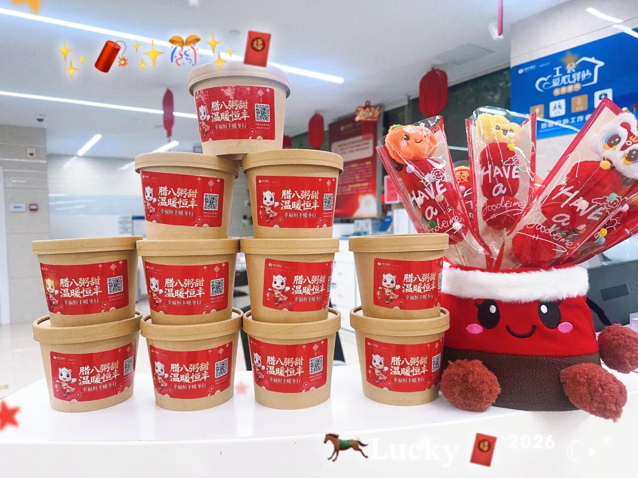 一碗软糯香甜的粥,一句真诚的节日祝福,让原本匆忙的厅堂瞬间浸润着家一般的暖意。“来银行还能喝到腊八粥,真是暖胃又暖心!”不少客户接过粥碗时,脸上写满惊喜与感动。