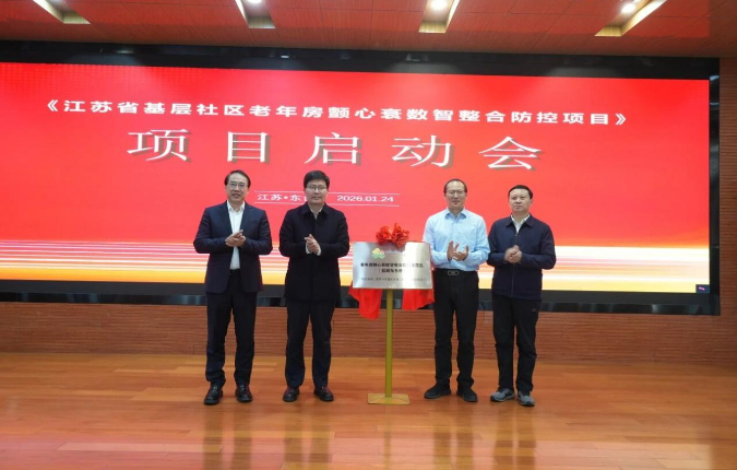 随后,在参会人员的共同见证下,江苏省卫健委基层处副处长汤苏川、丁强、王金龙,东台市卫健委主任崔海共同为“老年房颤心衰数智整合防控示范区(盐城东台市)”揭牌,标志着东台市在老年慢病智慧防控领域已进入实质性建设阶段。