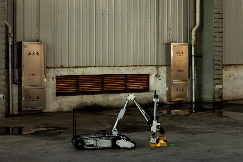 排爆机器人如同一位灵动的勇士,灵活穿梭于危险区域,通过高清摄像头精准定位爆炸包裹的位置,并小心翼翼地将其安全转运至空旷地带。最终,排爆手操控水炮枪实施定点爆破,随着一声巨响,隐患被彻底消除。