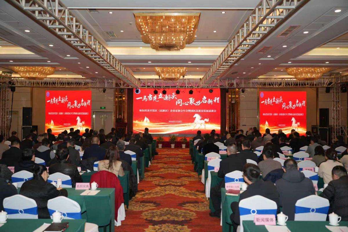 1月29日,如东经济开发区召开企业家协会年会暨园区高质量发展恳谈会,邀请区企业家协会全体会员单位负责人、部分客商代表以及中国银行、工商银行等单位负责人参会,面对面交流,倾听企业心声,政企同心共绘园区高质量发展新蓝图。