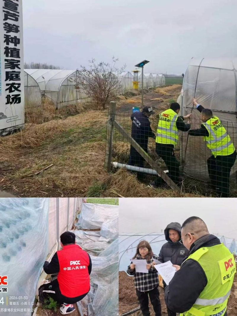 根据最新气象资料分析,1月29日夜间至31日,江苏省自西向东将出现一次雨雪天气过程。此次雨雪相态转换复杂,风力与降温幅度虽不大,但仍对农业生产构成隐患,易导致设施种植棚体坍塌、畜禽养殖畜禽伤亡等风险。为切实保障农业生产安全,最大限度降低损失,江苏人保财险坚决扛起服务“三农”的责任使命,以风险减量为核心,通过科学研判、统筹调度、精准预警,构建全方位农业风险防控体系,全力守护农业生产安全与农户切身利益,为全省农业稳产保供筑牢坚实保险屏障。