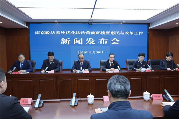 2026年1月30日下午,南京市召开政法系统优化法治营商环境暨惠民与改革工作新闻发布会。市委政法委副书记、二级巡视员丰友芳发布2025年全市政法系统优化法治营商环境、政法惠民和司法改革举措成效,市法院、市检察院、市公安局、市司法局相关负责人分别介绍了专项举措并回应媒体提问。市委政法委新闻发言人、一级调研员范荣平主持发布会。会上披露,南京已成功获评第三批全国法治政府建设示范市,一系列政法惠民与改革举措为高质量发展注入强劲法治动能。