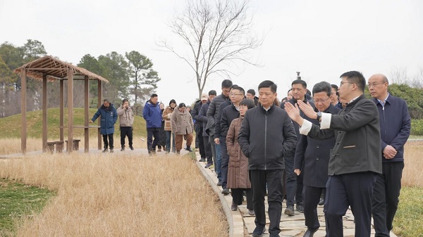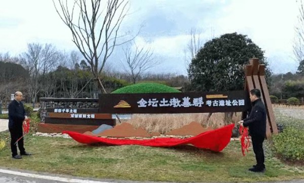 1月31日,金坛土墩墓群考古遗址公园开园活动在金坛薛埠镇仙姑村举行,省市区相关部门领导出席活动。江苏省地质局党委委员、副局长余新明及金坛区委书记、区长胥亚伟共同为考古遗址公园揭幕。