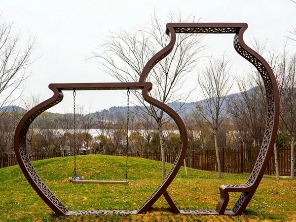 金坛土墩墓群为全国重点文物保护单位,考古成果曾获“2005年全国十大考古新发现”。金坛土墩墓群考古遗址公园位于薛埠镇仙姑村,占地面积约45亩,2023年,成功入选首批江苏省省级考古遗址公园立项名单。遗址公园利用生动的模型与互动装置系统展示了土墩墓的形制结构、营造过程、葬俗文化与出土器物,园内设有多处打卡点位及互动设施。游客不仅能在“户外博物馆”观赏仿制的原始青瓷、几何印纹硬陶、青铜礼器等,还能通过吴文化场景小品领略传统文化的魅力。