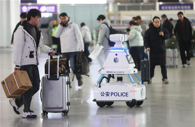警务机器人“小安”在今年春运首次亮相。它具备自主巡逻、智能导引、安全宣传、一键报警等多重功能,可在候车区域连续工作超过12小时,成为民警的得力助手和旅客的贴心向导。春运首日上午,一位老年旅客在南京南站因不熟悉自助检票而求助,“小安”迅速引导民警到场协助,温暖画面获得众多旅客点赞。
