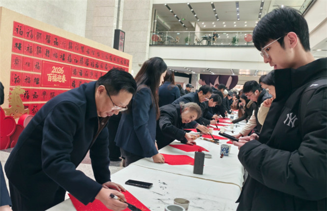 百个“福”字既各具特色、各有千秋,又浑然一体、相映成趣,共同构成一幅寓意吉祥、文脉绵长的文化长卷。 “每个‘福’字都藏着文脉传承,每次打卡都是与传统的对话。”现场市民纷纷感慨,百福墙让高雅的书法艺术走出殿堂、融入日常生活,大家在感受浓浓新春氛围的同时,也深深领略到中华传统文化的独特魅力。