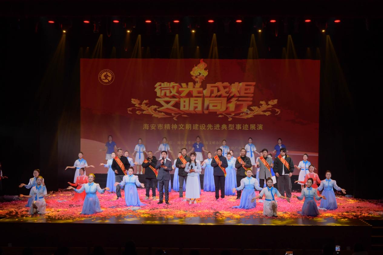 近日,海安“微光成炬 文明同行”精神文明建设先进典型事迹展演活动举行。活动现场,灯光璀璨、暖意涌动。一个个鲜活的榜样故事通过情景剧、事迹宣讲、歌舞表演等形式徐徐铺展,引得现场观众掌声雷动、热泪盈眶,每一个节目都是海安好人的生动写照,每一段事迹都彰显着海安人的赤诚与善良。这场集视觉与心灵于一体的展演,不仅是对海安2025年精神文明建设成果的集中检阅,更像一把钥匙,打开了这座“好人之城”的温暖篇章,让我们看见,在海安的大街小巷、田间地头,好人如星火燎原,善意如春风拂面,“海安好人多、海安人好”的城市名片愈发鲜亮。