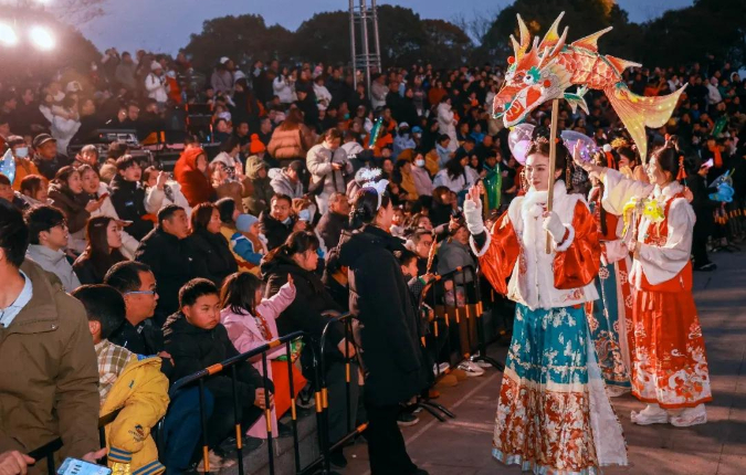 如果意犹未尽,不如赴一场烟火十足的慢城“村晚”。2月19日—2月20日,以“星河灯会”为主题的“慢城村晚”系列活动如约而至。非遗皮影戏灵动光影、鱼灯巡游璀璨灵动、村晚焰火秀绚烂夺目、打铁花火树银花等一连串精彩活动轮番登场,为游客带来一场视听盛宴。