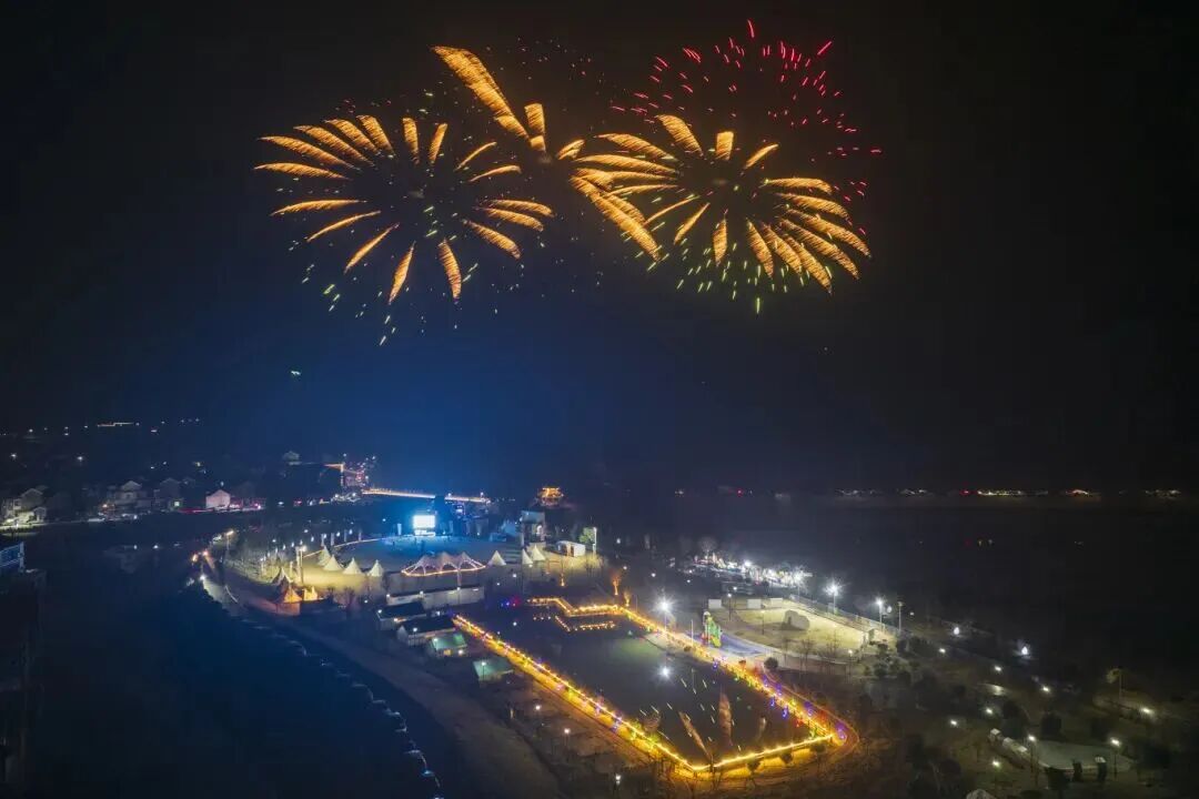 傅家边景区、骆山花火露营公园等市级烟花燃放点同步推出烟火主题体验。无想水镇的非遗打铁花表演更是流光溢彩,铁花在空中绽放,如流星般璀璨夺目。与水上婚礼巡游、泡泡鱼灯巡游共同构成了一场夜间视觉盛宴,让游客沉浸式感受“烟火气”与“诗意感”的完美融合。