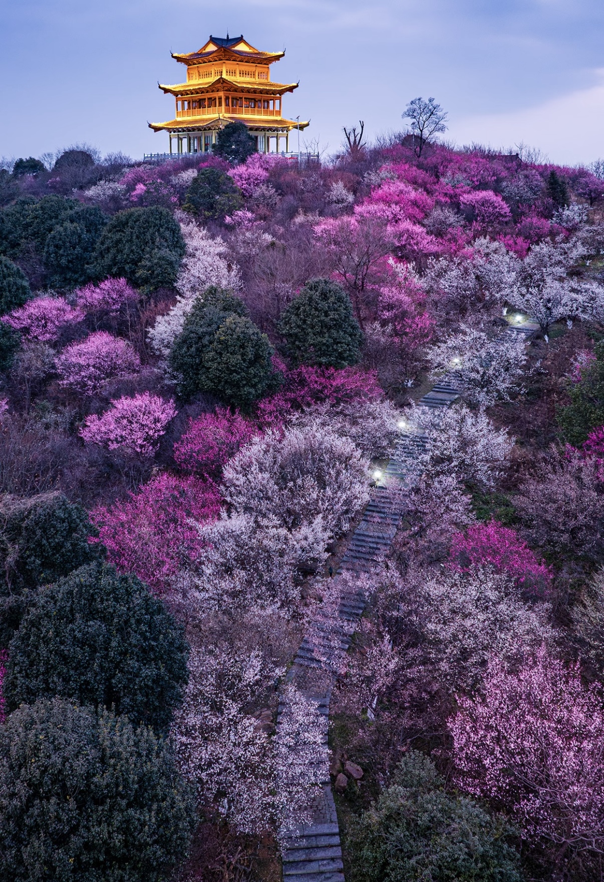 漫山遍野的梅花竞相绽放,搭配诗词大道、梅品园的亮化布置,宛如一幅美丽的画卷。白天,游客可以漫步在花海中,欣赏繁花盛景,打卡创意梅影墙,留下美好的瞬间;夜间,沉浸式感受夜梅的韵味,在灯光与月色的交织下,梅花更显神秘而迷人。周边精品草莓园同步开放“现摘现尝”体验,游客在赏花之余,还能亲手采摘清甜的草莓,品味田园的新鲜与美好。