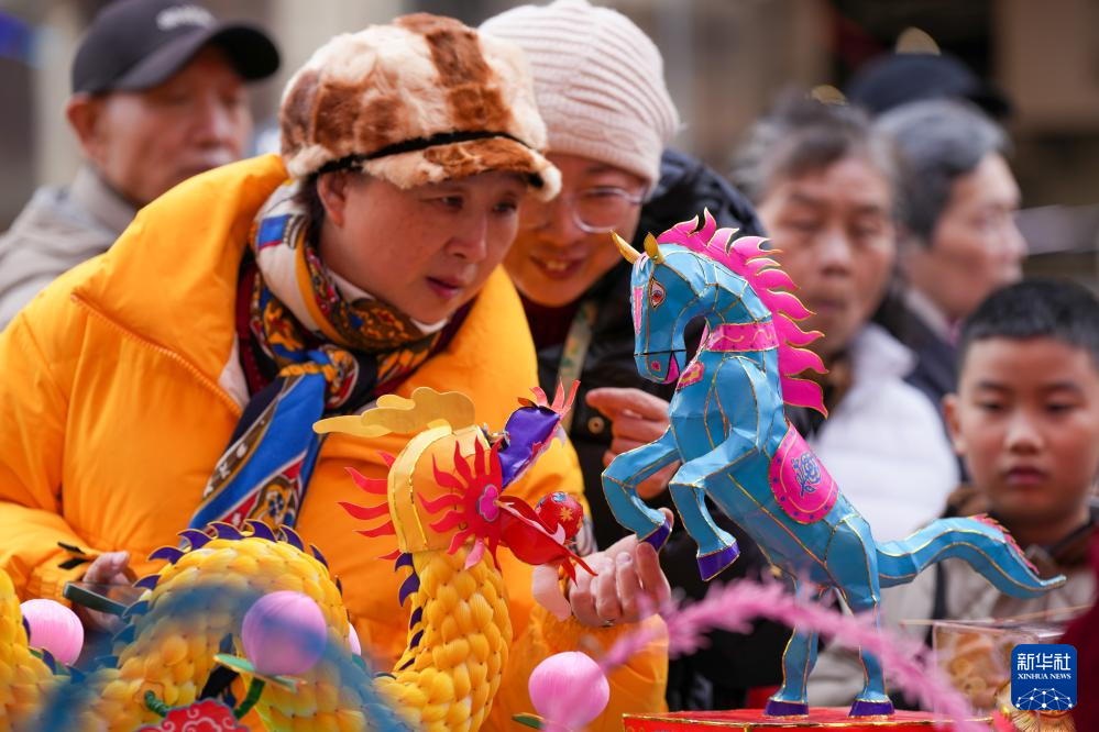 2月17日是农历马年大年初一,南京夫子庙景区年味正浓。50余位花灯艺人聚集于夫子庙灯市,展销各种花灯,吸引大量市民前来观赏选购。