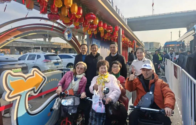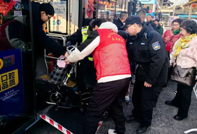 张哲见状,主动将他们带到接驳点,并联动南京公交集团工作人员开放公交车的助残通道,随后张哲便带领工作人员一起为这四名乘客开启绿色通道。