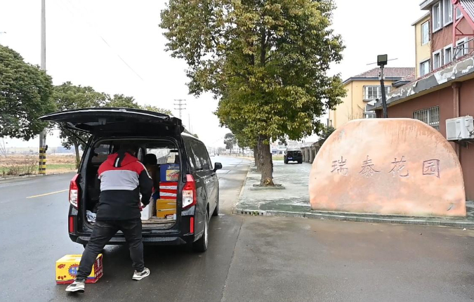 正月初二9时多,走进武墩街道菜鸟驿站网点,一辆快递三轮车停靠在站点门口,32岁的快递员张磊弯腰俯身,双手稳稳托起一摞沉甸甸的快递件,搬上快递车并整齐码放,动作娴熟又利落,一连串动作行云流水。不一会工夫,快递车的车厢就被大小不一的快件堆得满满当当,张磊坐上驾驶位,向目的地驶去。