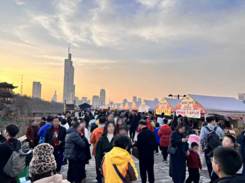 舞姿渐远,瑞马奔来。腊月廿七到正月初七,台城之上还有“瑞马纳福台城吉市”热闹开市。这个年味十足的城墙主题市集,将文创、手作与城墙元素巧妙结合。游客可以在这里买到以城墙元素为灵感的创意文创,现场解锁传统手工艺新体验,“马”上玩转新春氛围。市集不仅丰富了游城墙的体验,更让古老的文化遗产以可亲、可玩、可消费的方式融入现代节日生活。“在城墙上逛集市,吹着晚风,看着玄武湖的景色,感觉特别惬意。买的不仅是东西,更是一份在历史高处过新年的独特记忆。”一位年轻游客这样分享她的体验。