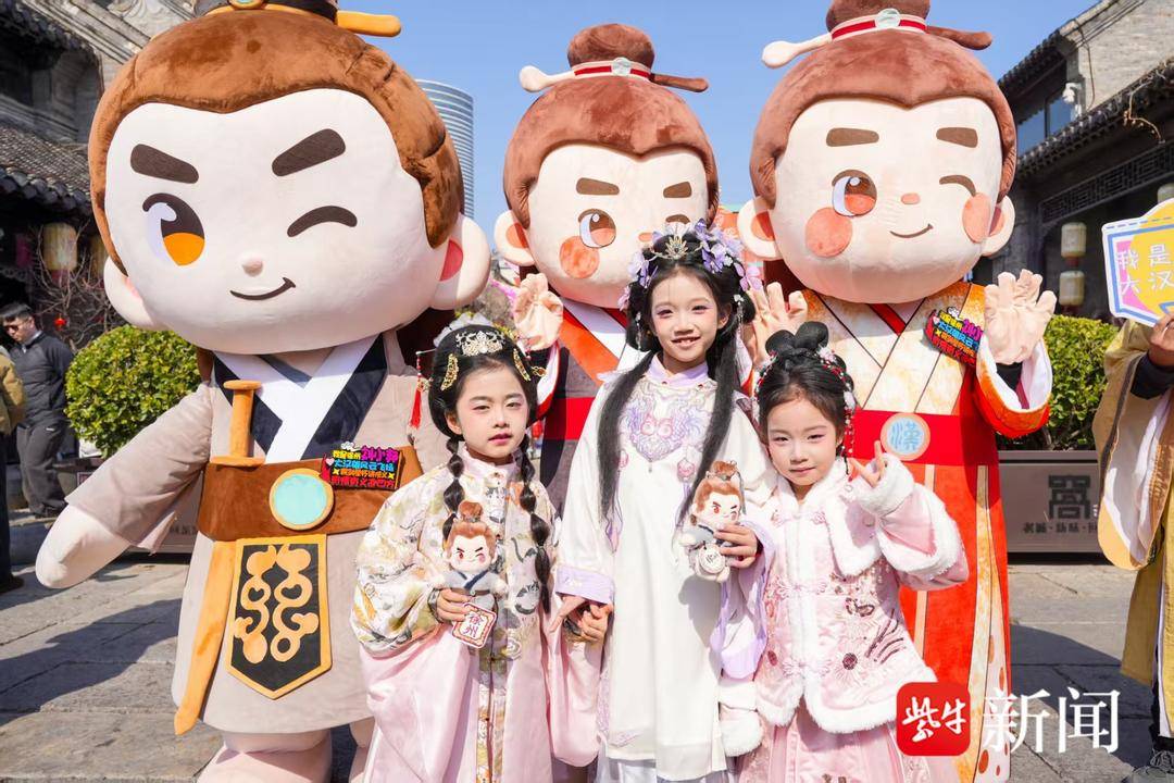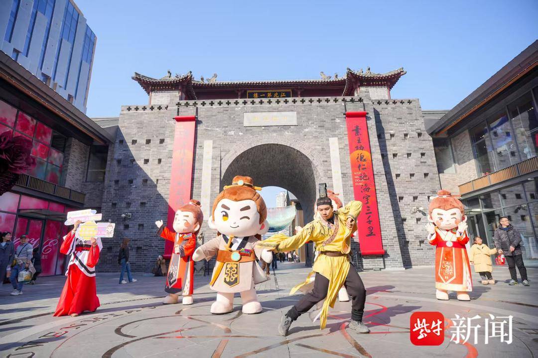 在2月21日的巡游中,“刘小邦”先乘坐地铁,与游客们亲昵互动。随后,“刘小邦”沿着彭城七里历史文脉轴线行进:从博物馆门前广场首站启幕,经云龙山、云龙湖走进回龙窝古巷感受年味打卡,再前往文庙完成文化与潮流的双向穿梭,最终抵达苏宁广场附近商圈、音乐厅门口完成潮玩集结的“刘小邦彭城贺新春,七里拜大年行程”。每到一处,刘小邦都身着精心设计的汉风服饰与市民游客亲密互动,刘小邦IP的原创歌曲及原创舞蹈《志气少年刘小邦》也一并展示,游客们纷纷与“刘小邦”牵手、拥抱、合影留念,欢声笑语此起彼伏。