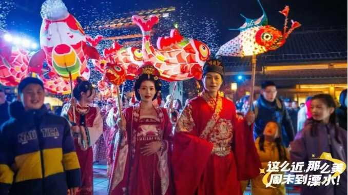 持续深化商文旅体多元融合,打造丰富消费场景,金陵长乐坊、第40届秦淮灯会、汤山、园博园、溧水何林坊双龙闹新春等众多场景引发央视报道,持续吸引旅客来宁游玩,感受南京春节韵味。