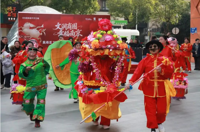 “文化走亲——文润商圈 幸福南京”2026过大年公共文化进商圈系列活动,体现文化走亲特色,采取主城区与郊区之间结对,节目互送、团队互访的形式,将各区的特色民俗活动送进商圈、送到百姓身边。全市文化馆、公共图书馆免费开放,围绕公共文化进商圈、进景区、进社区、进乡村等,组织开展文艺演出、民俗展示、阅读推广、互动体验、展览讲座等各类群众文化活动800多场。