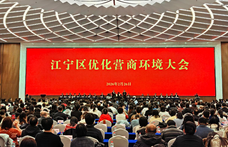 春启新程,实干为先。2月26日,南京江宁召开“新春第一会”——优化营商环境大会,奏响了新一年高质量发展的“春之序曲”,现场发布《江宁区2026年优化营商环境工作要点》(以下简称《工作要点》)等,江宁区企业综合服务中心正式揭牌运营,全区企业、行业协会代表等千余人参加。从新年首个工作日的“项目支撑力提升行动”启动,到1月10日产业科技创新大会“人才强区政策2.0”发布,再到此次“新春第一会”的营商环境再部署,江宁区以“起步即冲刺”的奋斗姿态,在“十五五”开局之年打出了一套优环境、强服务、促发展的“组合拳”。