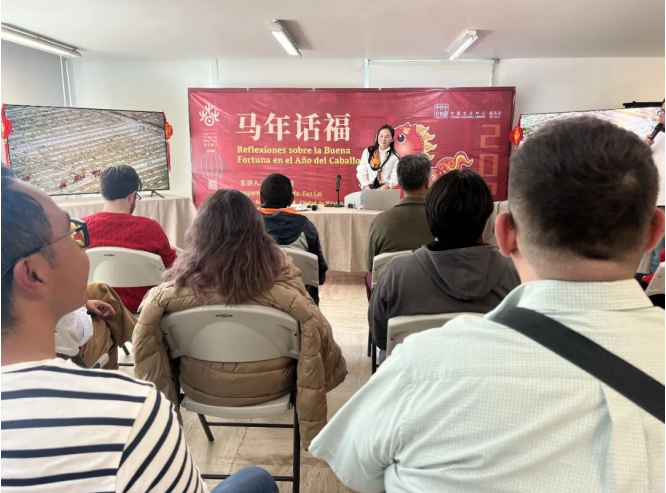 当地时间2月26日,由墨西哥中国文化中心与江苏省中国画学会联合举办的“马年话福”主题文化交流活动,在墨西哥中国文化中心温馨举行。墨西哥中国文化中心主任李林,中国画学会副秘书长、江苏省中国画学会会长翟优,中国艺术研究院艺术培训中心导师、江苏省中国画学会常务理事樊蕾等艺术家,与墨西哥各界人士欢聚一堂,共品中华福文化,共迎马年新春祥瑞。