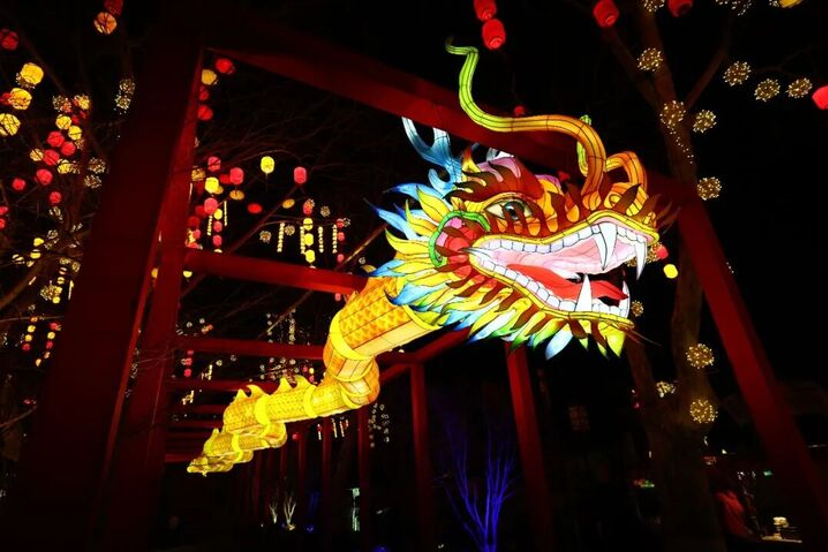 蜿蜒盘踞的龙灯走廊,流光溢彩,如真龙翱翔,气势恢宏。