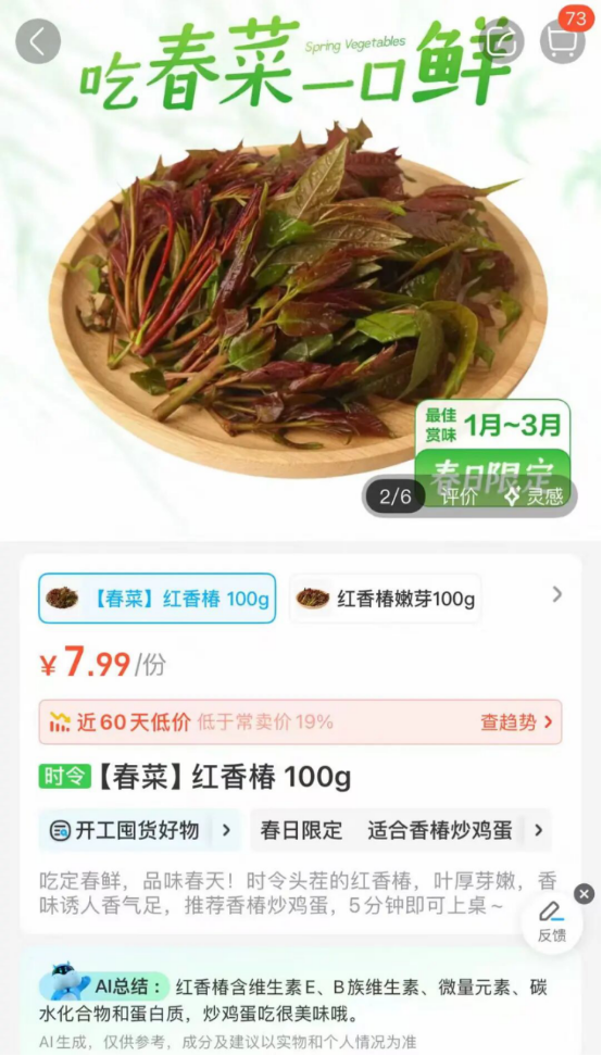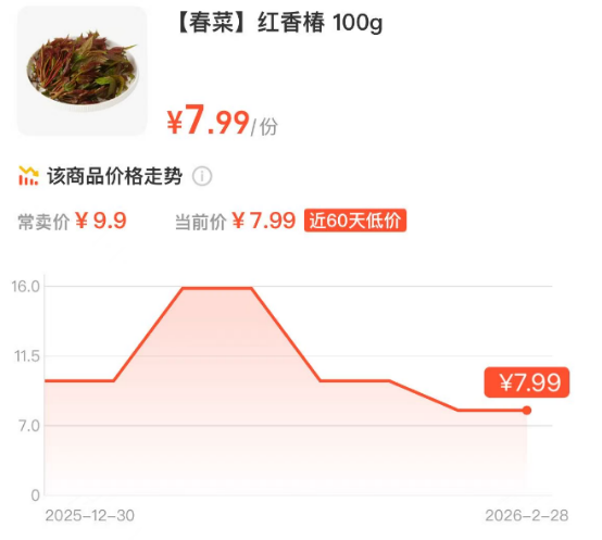 而在本地买菜平台上,100g的价格在9—16元不等,每斤售价45元—80元,对比春节前期价格有所下降。