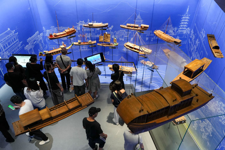 游客在位于江苏省扬州市的中国大运河博物馆内参观(2025年10月11日摄)。新华社记者 李博 摄